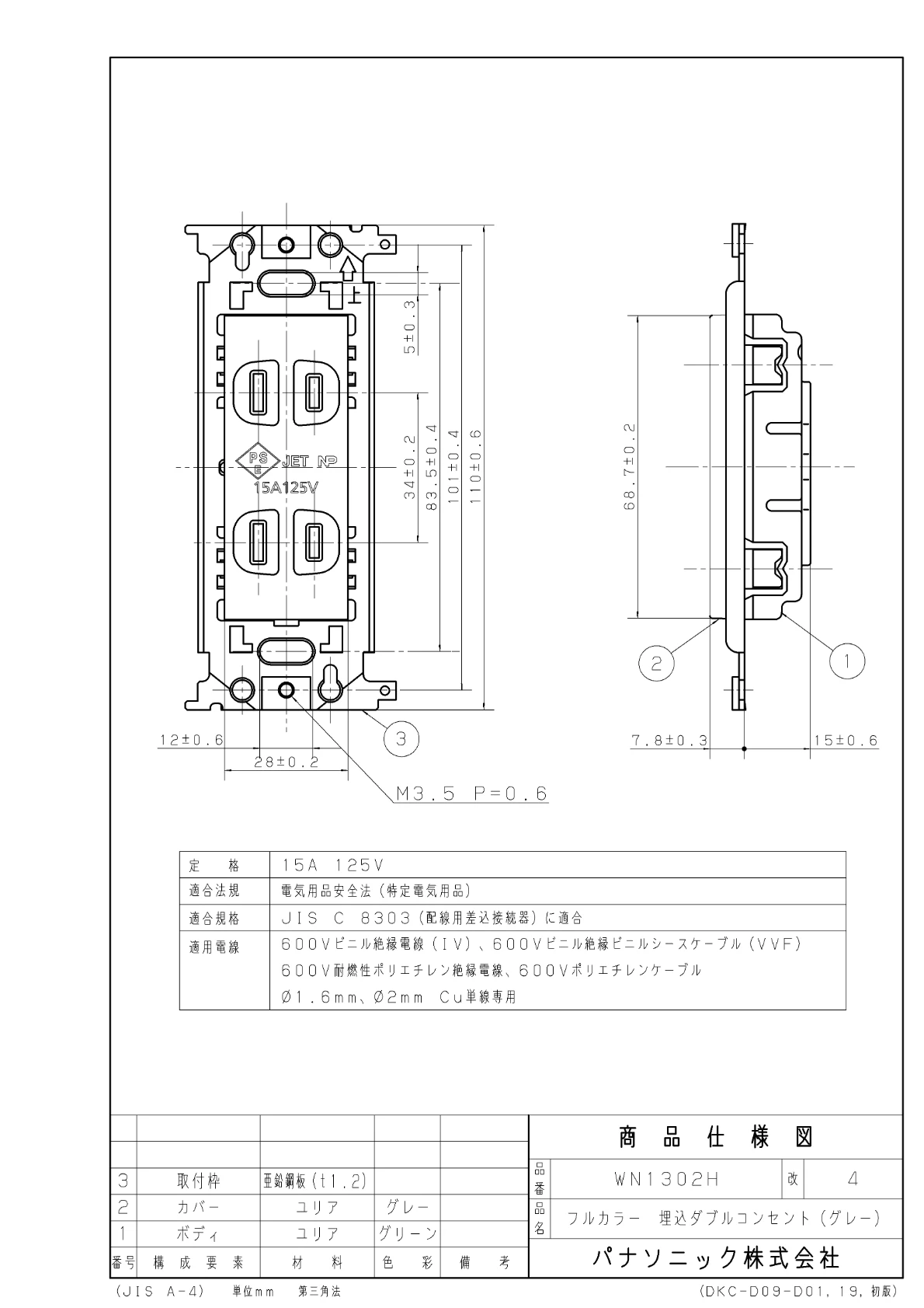 - 電設資材 > パナソニック(Panasonic) > フルカラー配線器具 > コンセント > ダブル