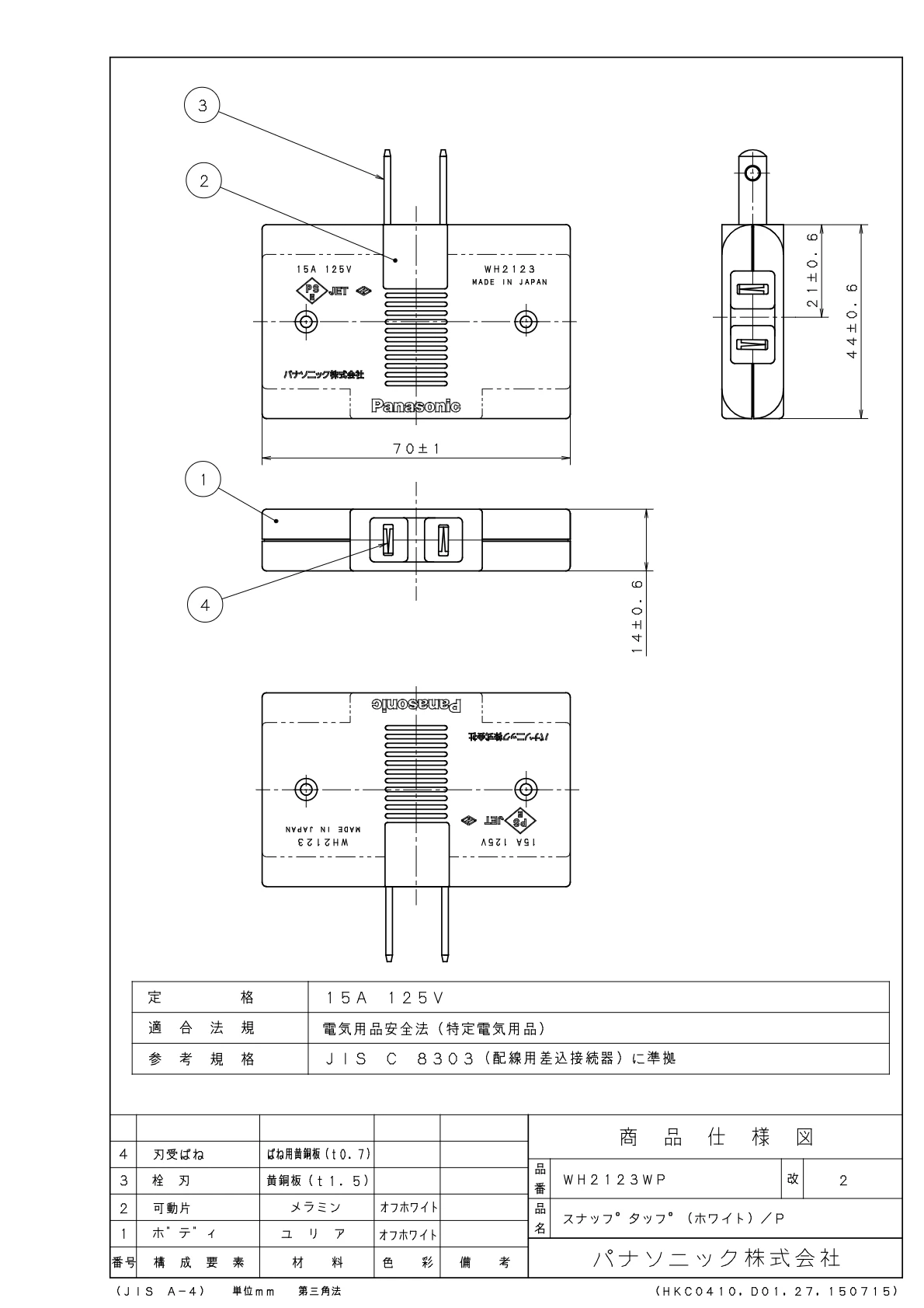 - 電設資材 > パナソニック(Panasonic) > タップ