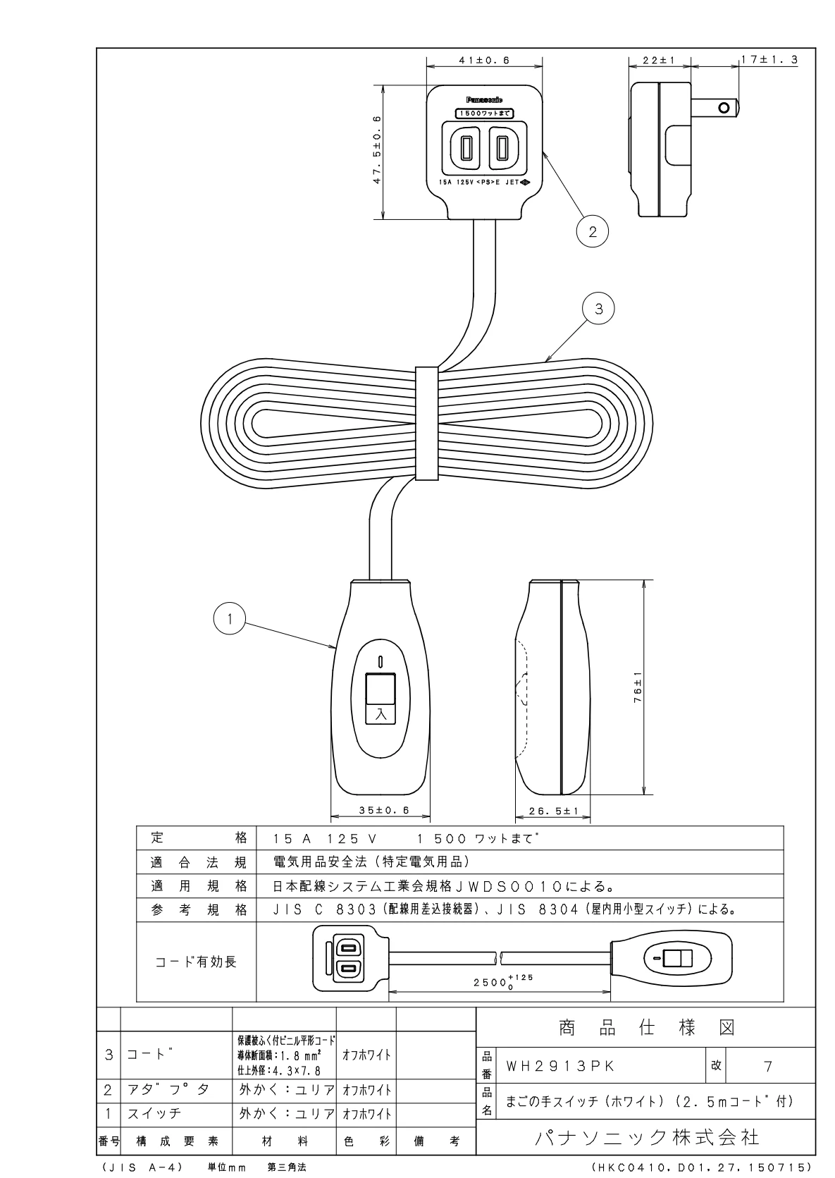 WH2913PK まごの手スイッチ(ホワイト)(2.5Mコード付)/プラスチック個装