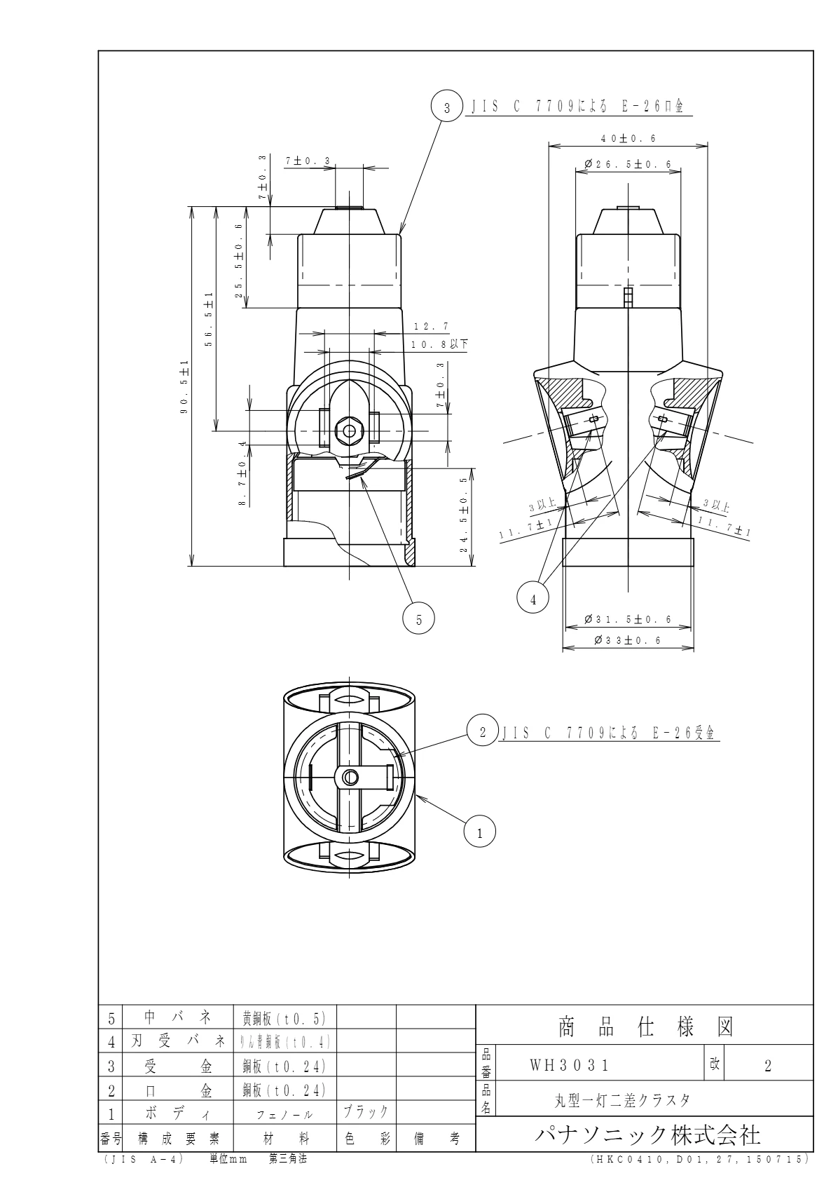 品番:WH3031品名:丸型1灯2差クラスタ