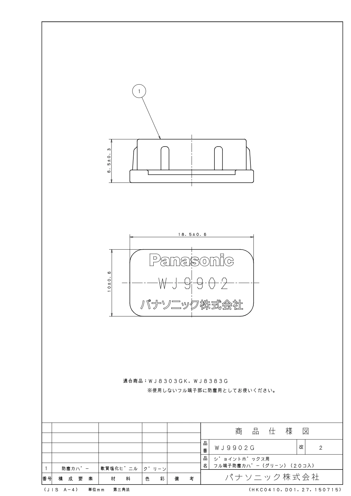 品番:WJ9902G品名:ジョイントボックス用フル端子防塵カバー(1箱20コ入)