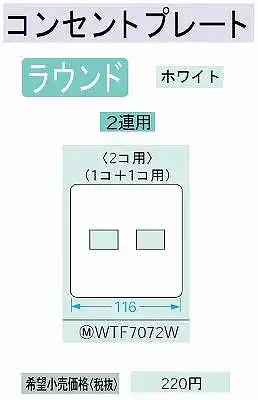 WTF7002W コンセントプレート(2コ用)(ホワイト)販売価格: ¥120メーカー:パナソニック(panasonic)型番: WTF7002W -