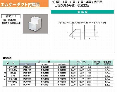 MDU3403 エムケーダクト付属品 内マガリ(3号40型・ミルキーホワイト)販売価格: ¥3,702メーカー:マサル工業株式会社型番: MDU3403 -