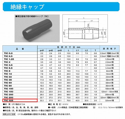 TIC325-B 圧着端子用絶縁キャップ(TIC)黒販売価格: ¥5,203メーカー:ニチフ型番: TIC-325B -