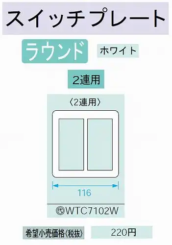 WTC7102W コスモシリーズワイド21 スイッチプレート(2連用)(ホワイト)販売価格: ¥237メーカー:パナソニック(panasonic)型番: WTC7102W -