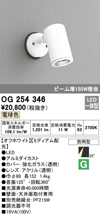 OG044131+No230H 屋外用スポットライト 別売ランプ込(E26) ビーム球150W相当 非調光・電球色 ビーム角ワイド36度 色:オフホワイト販売価格: ¥13,890メーカー:オーデリック(ODELIC)型番: OG044131+No230H -