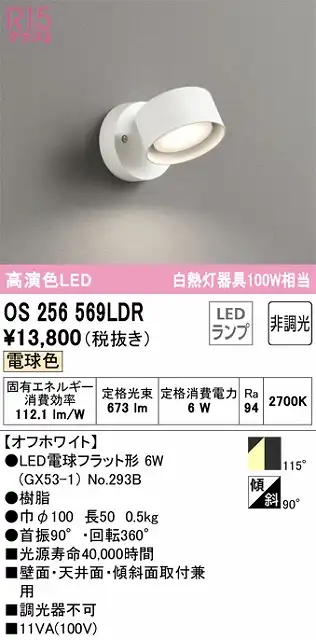 OS256569LDR スポットライト フランジタイプ 非調光・電球色 拡散配光 ホワイト 白熱灯器具100W相当販売価格: ¥5,768メーカー:オーデリック(ODELIC)型番: OS256569LDR -