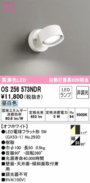 OS256573NDR スポットライト フランジタイプ 非調光・昼白色 拡散配光 ホワイト 白熱灯器具60W相当販売価格: ¥4,932メーカー:オーデリック(ODELIC)型番: OS256573NDR -