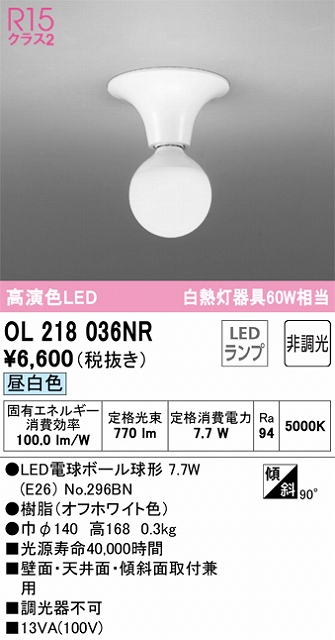 OL218036NR 小型シーリング 白熱灯60W相当 非調光・昼白色販売価格: ¥2,759メーカー:オーデリック(ODELIC)型番: OL218036NR -