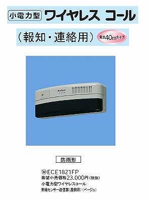 ECE1821FP 小電力型ワイヤレスサービスコール(熱線センサー送信器)(屋側用)(ベージュ)販売価格: ¥24,008メーカー:パナソニック(panasonic)型番: ECE1821FP -
