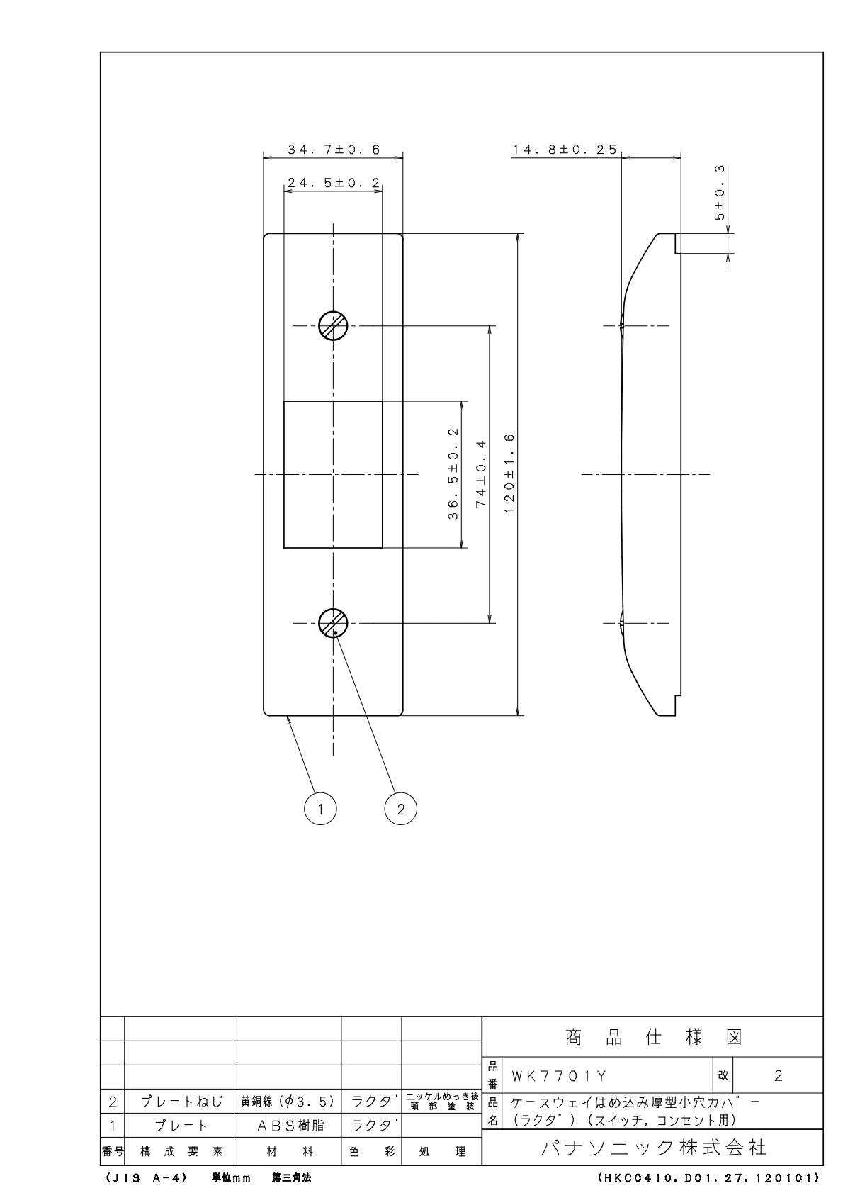品番:WK7701Y品名:ケースウェイはめ込み厚型小穴カバー(スイッチ・コンセント用)(ラクダ)
