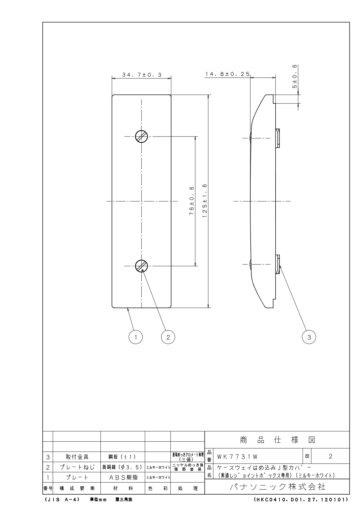 品番:WK7731W品名:ケースウェイはめ込みJ型カバー(素通しジョイントボックス専用)(ミルキーホワイト)