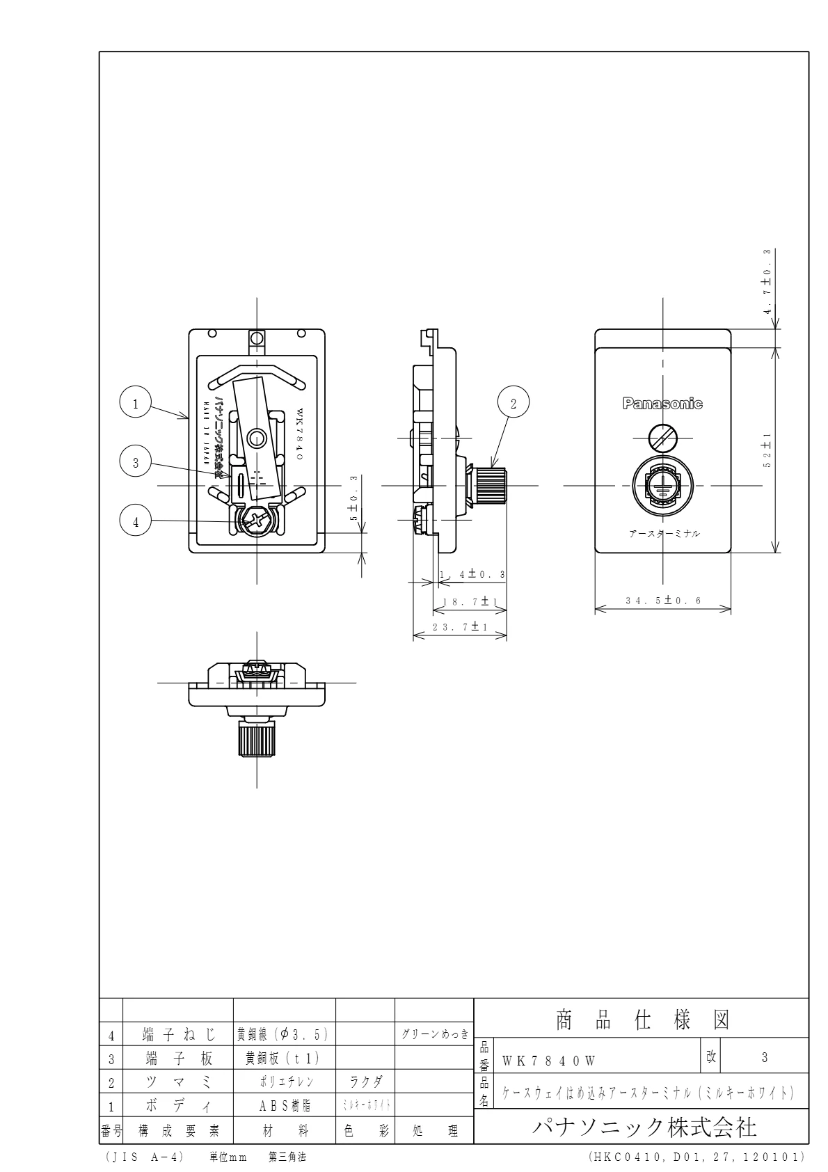 品番:WK7840W品名:ケースウェイはめ込みアースターミナル(ミルキーホワイト)