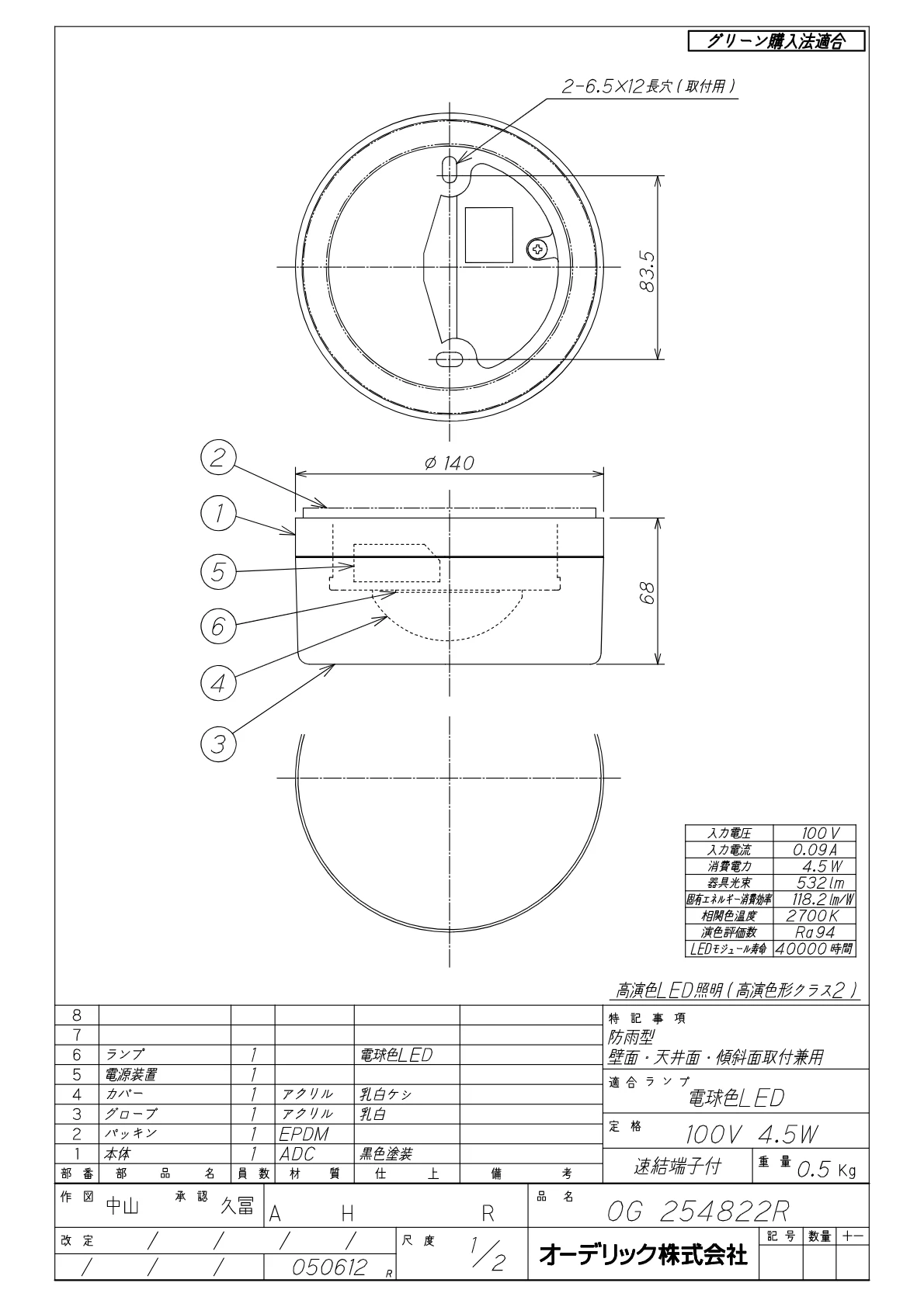 - 照明器具 > オーデリック(ODELIC) > ブラケットライト > 壁面・天井面・傾斜面取付兼用 > 非調光・電球色