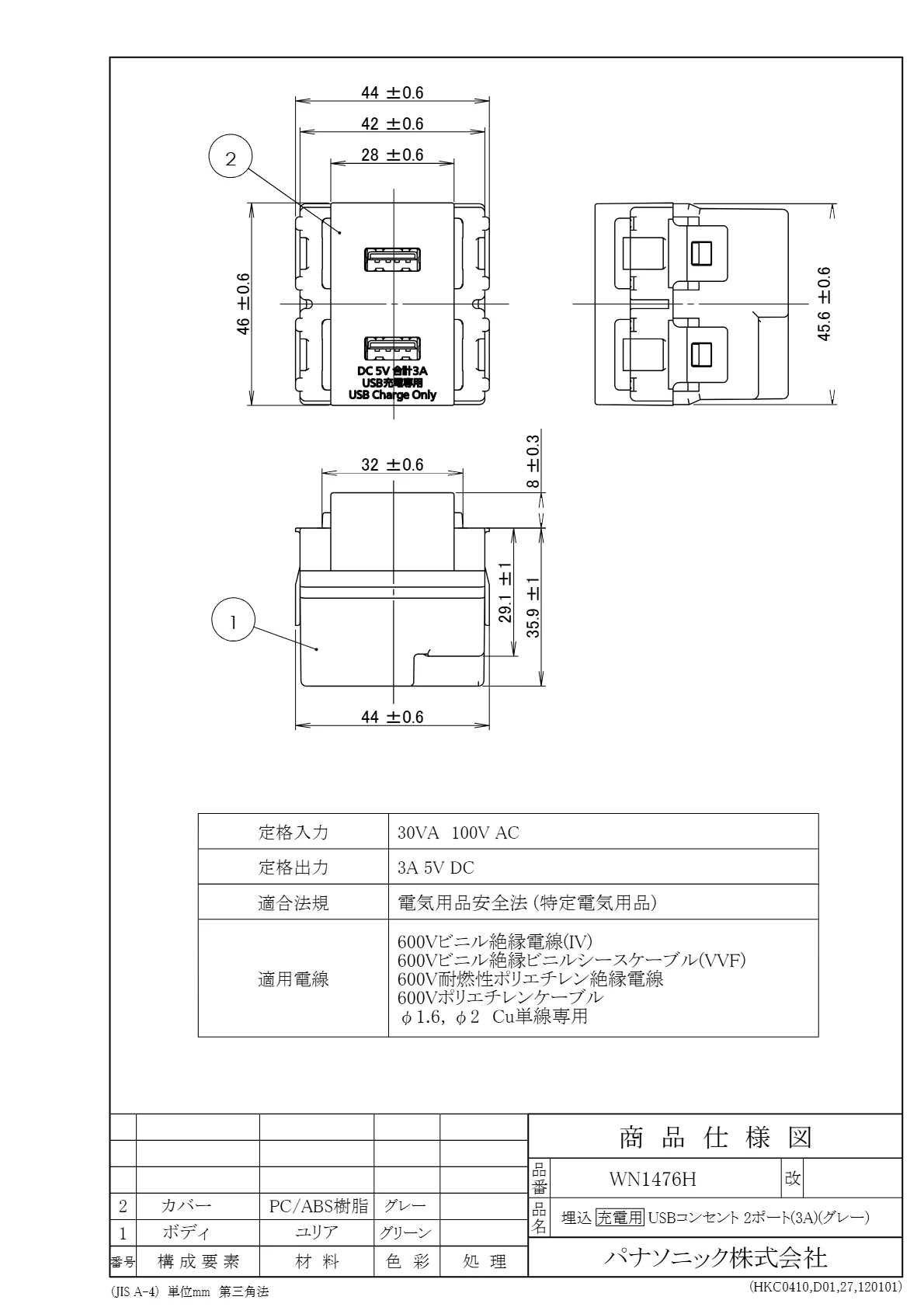 - 電設資材 > パナソニック(Panasonic) > USBコンセント > USB-A