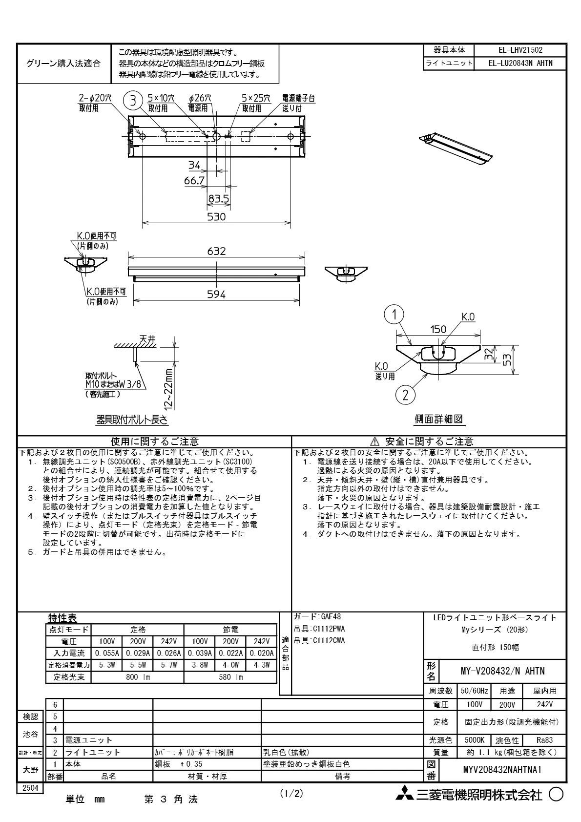 [8セット在庫あり]MY-V208432/N AHTN 逆富士形(V形)照明器具 150幅 全長632 FL20x1相当 昼白色