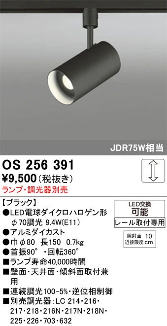 OS256391 スポットライト プラグタイプ ランプ別売 調光タイプ 調光器別売 本体色ブラック JDR75W相当