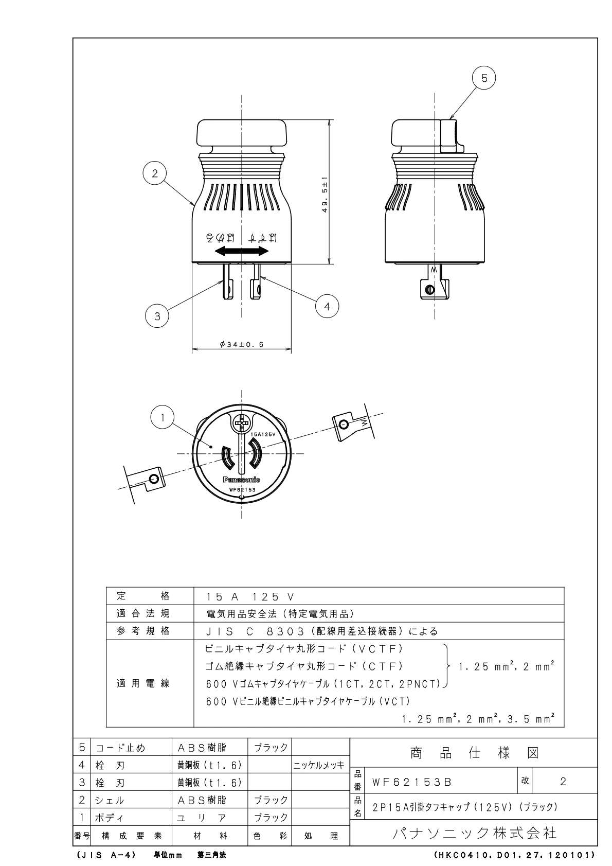 品番:WF62153B品名:引掛キャップ(ブラック)