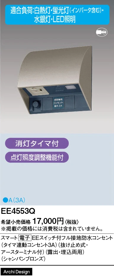 ![EE4553Q スマート[電子]EEスイッチ付フル接地防水コンセント(タイマ連動コンセント3A)(抜け止め式・アースターミナル付)(露出・埋込両用)(シャンパンブロンズ)](/html/upload/save_image/EE4553Q.webp)