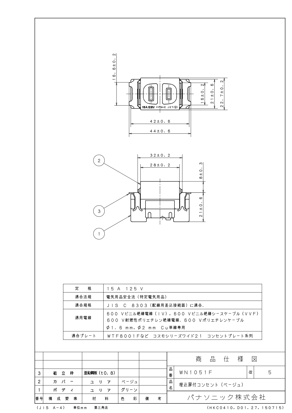 WN1051F 埋込扉付コンセント(ベージュ)