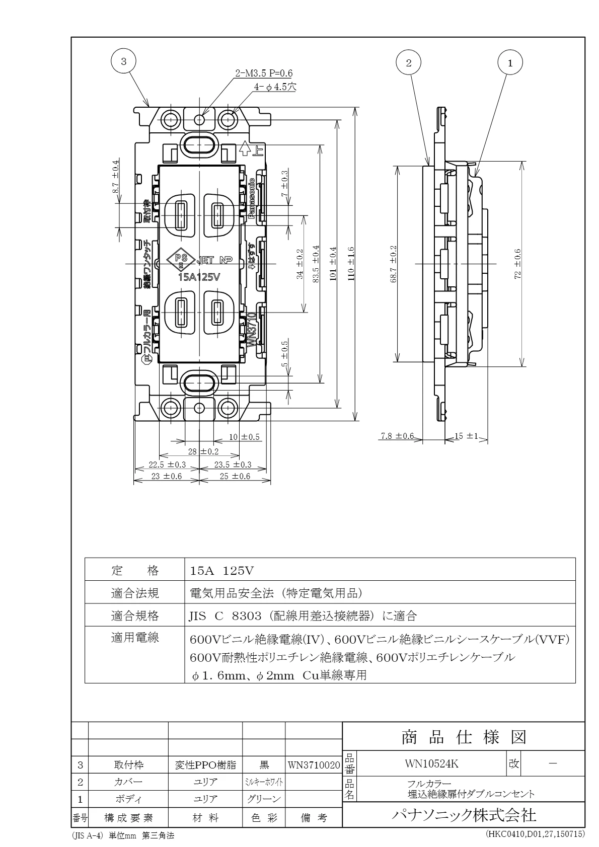 - 電設資材 > パナソニック(Panasonic) > フルカラー配線器具 > コンセント