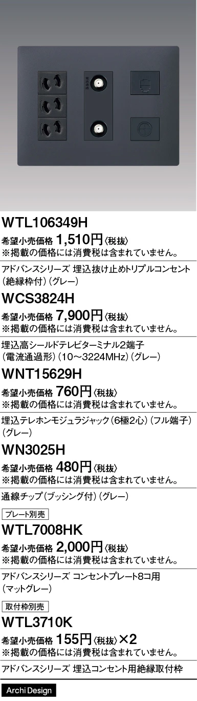 WN3025H 通線チップ(ブッシング付)(グレー)