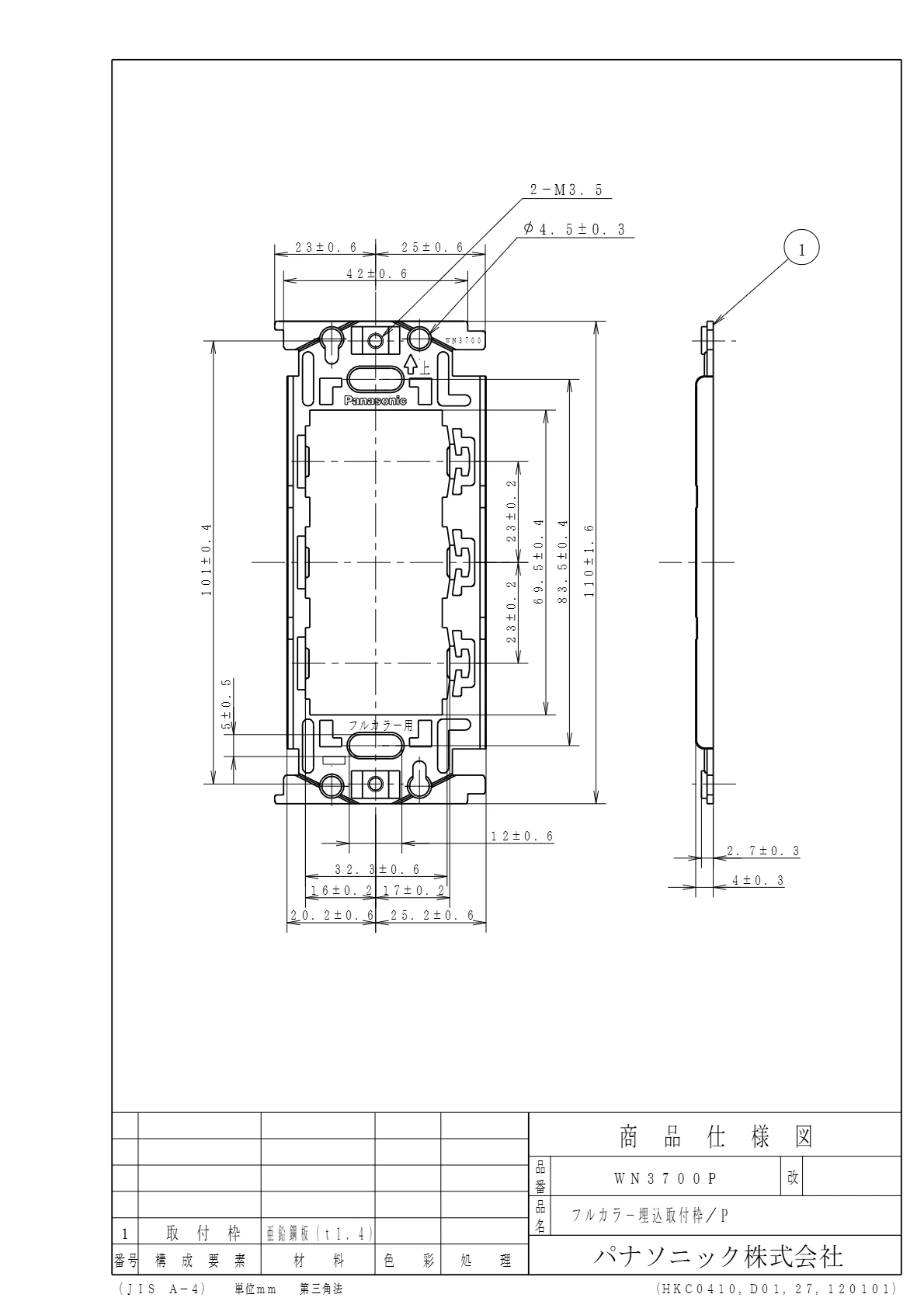品番:WN3700P品名:埋込取付枠/プラスチック個装