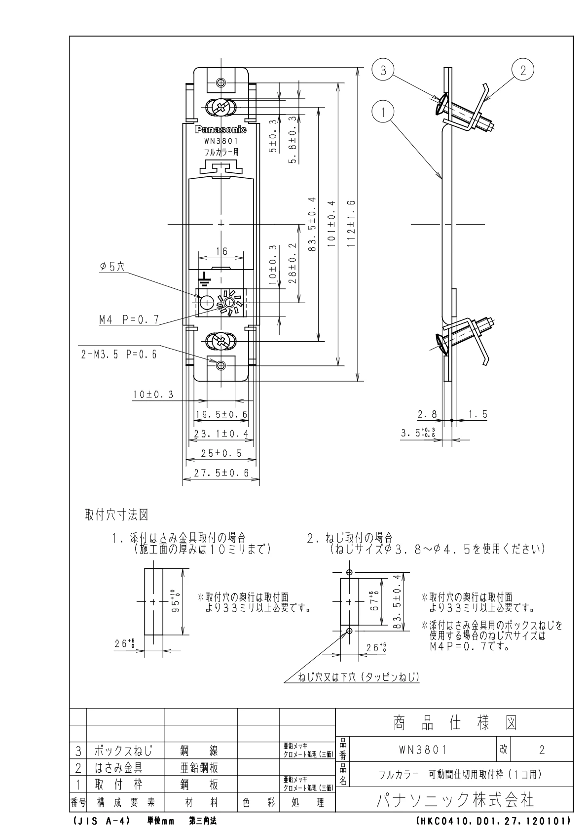 品番:WN3801品名:可動間仕切用取付枠(1コ用)
