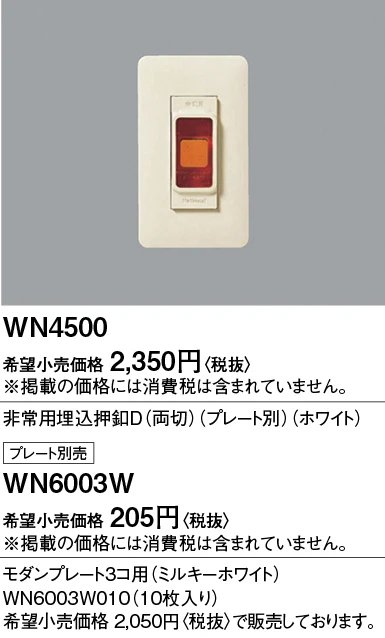 WN4500 非常用埋込押釦D(両切)(プレート別)