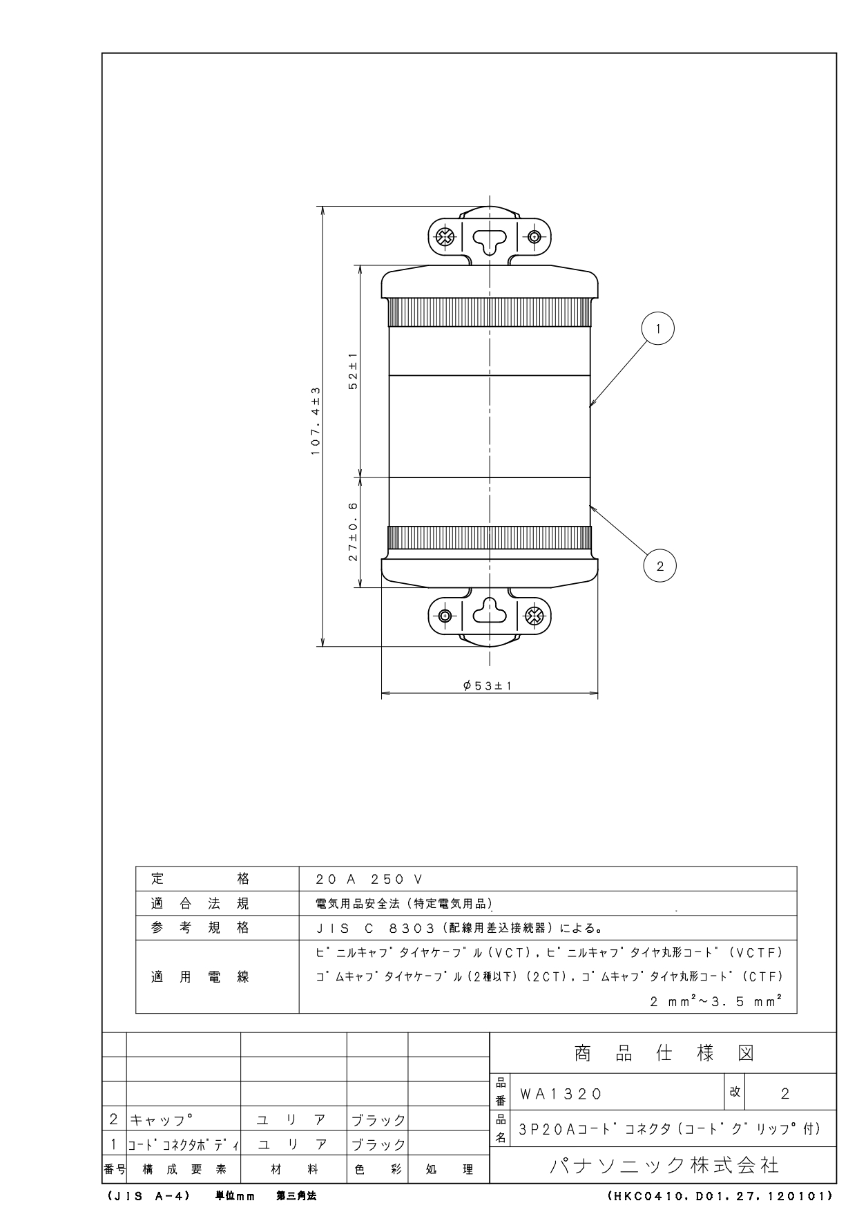 - 電設資材 > パナソニック(Panasonic) > フルカラー配線器具 > コードコネクタセット品 > 3P