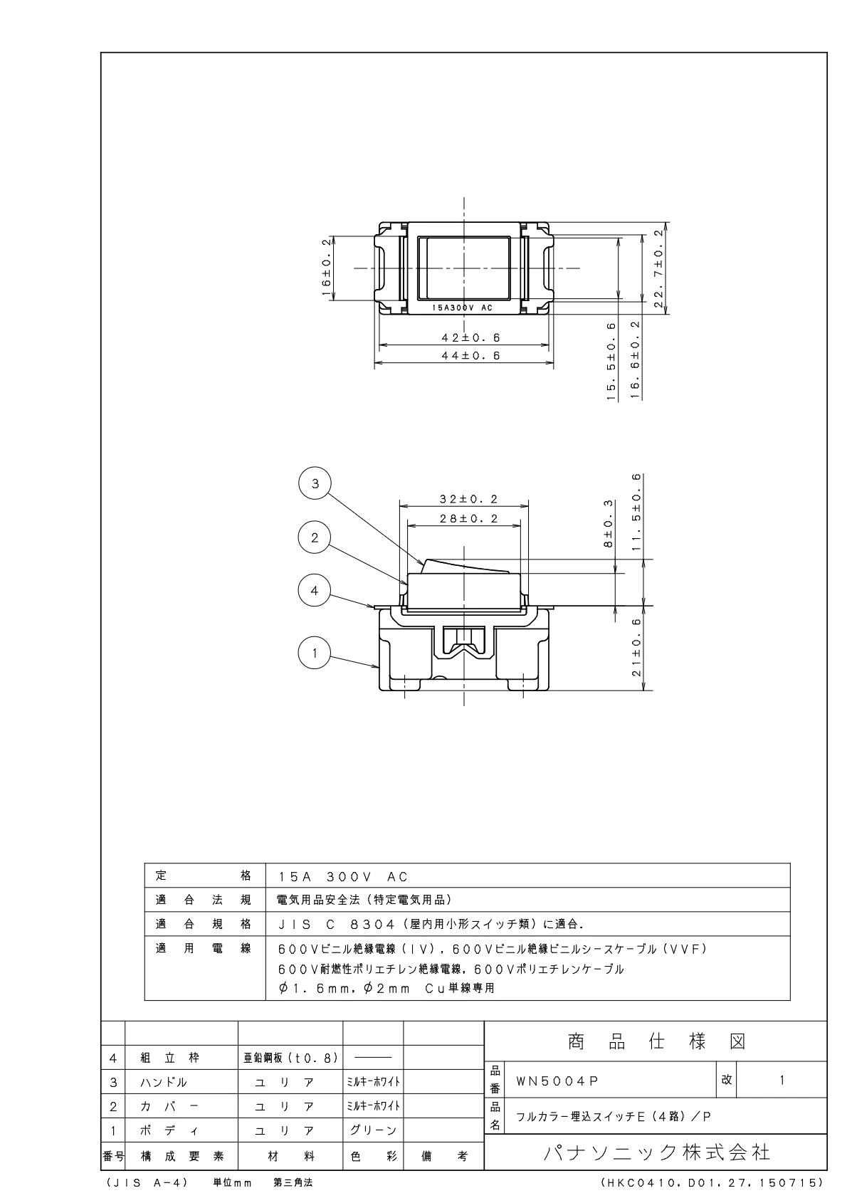 - 電設資材 > パナソニック(Panasonic) > フルカラー配線器具 > スイッチ > E(4路)