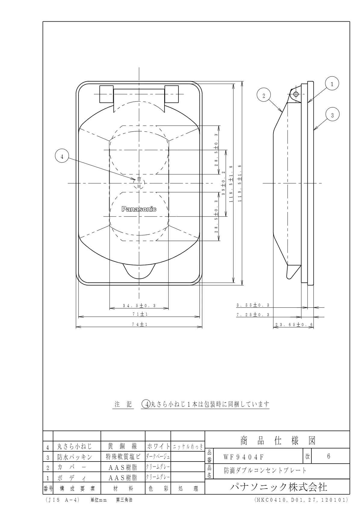 - 電設資材 > パナソニック(Panasonic) > フルカラー配線器具 > プレート > 防滴用