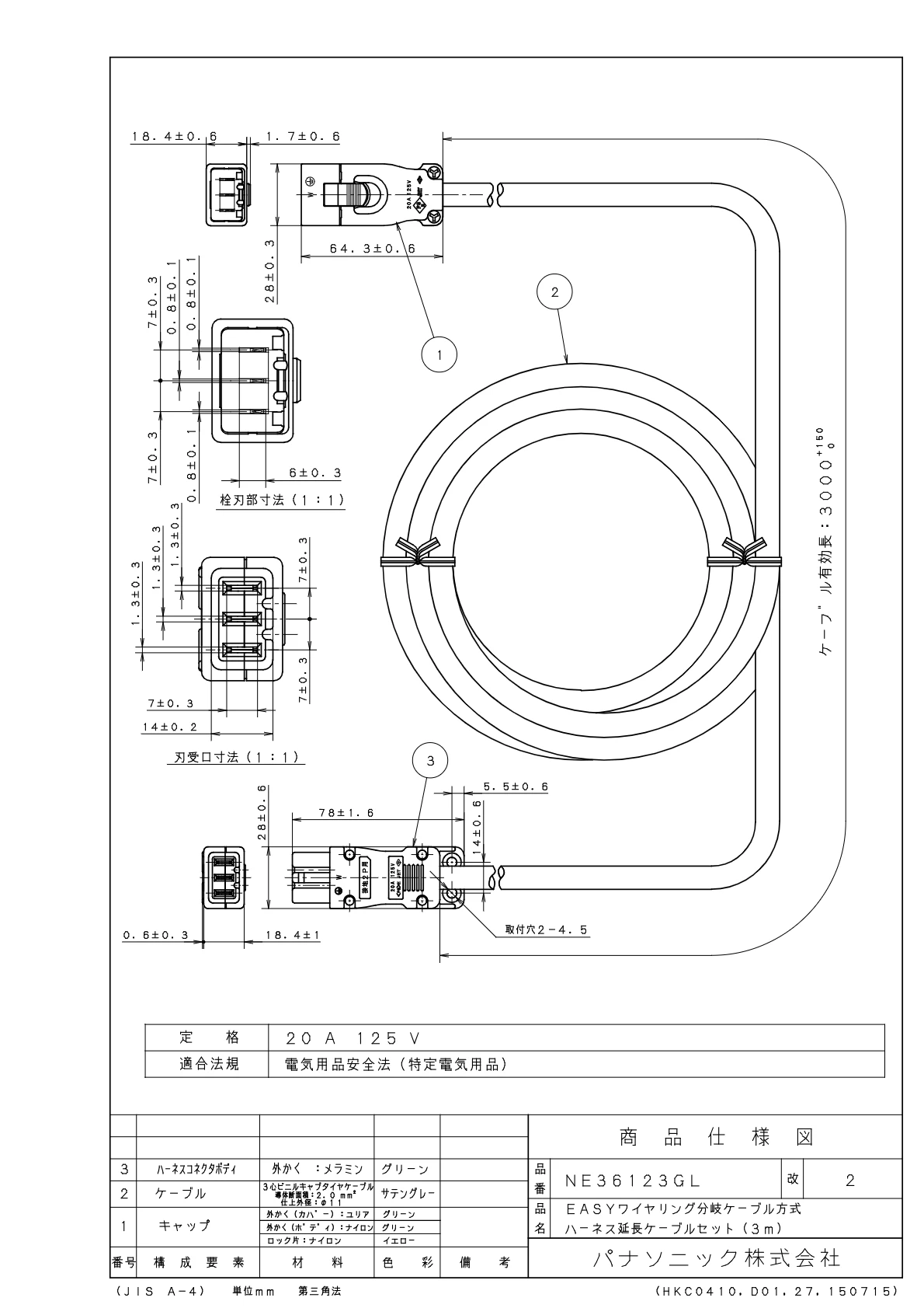 品番:NE36123GL品名:ハーネス用延長ケーブルセット3M