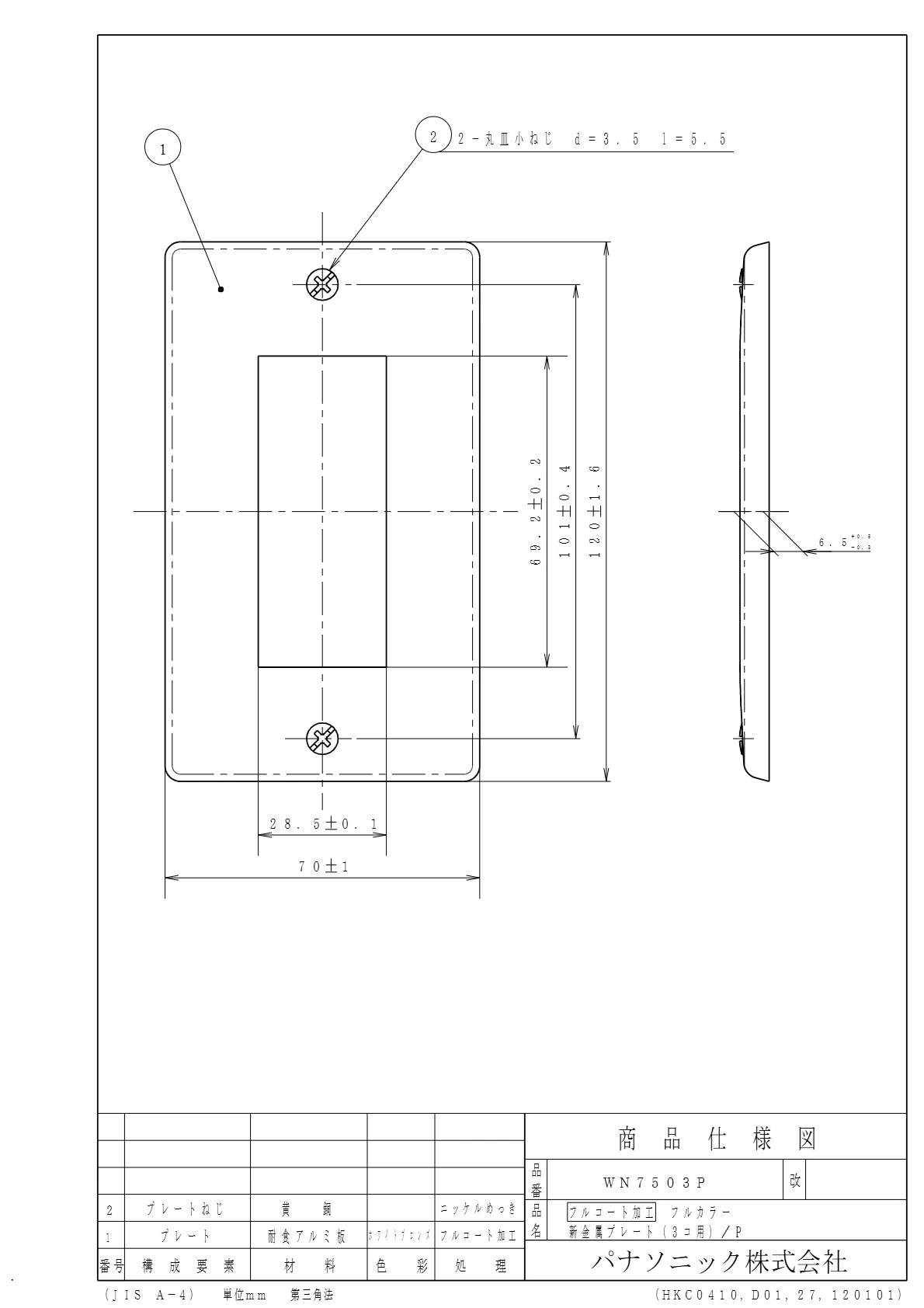 品番:WN7503P品名:[フルコート加工]新金属プレート3コ用/プラスチック個装