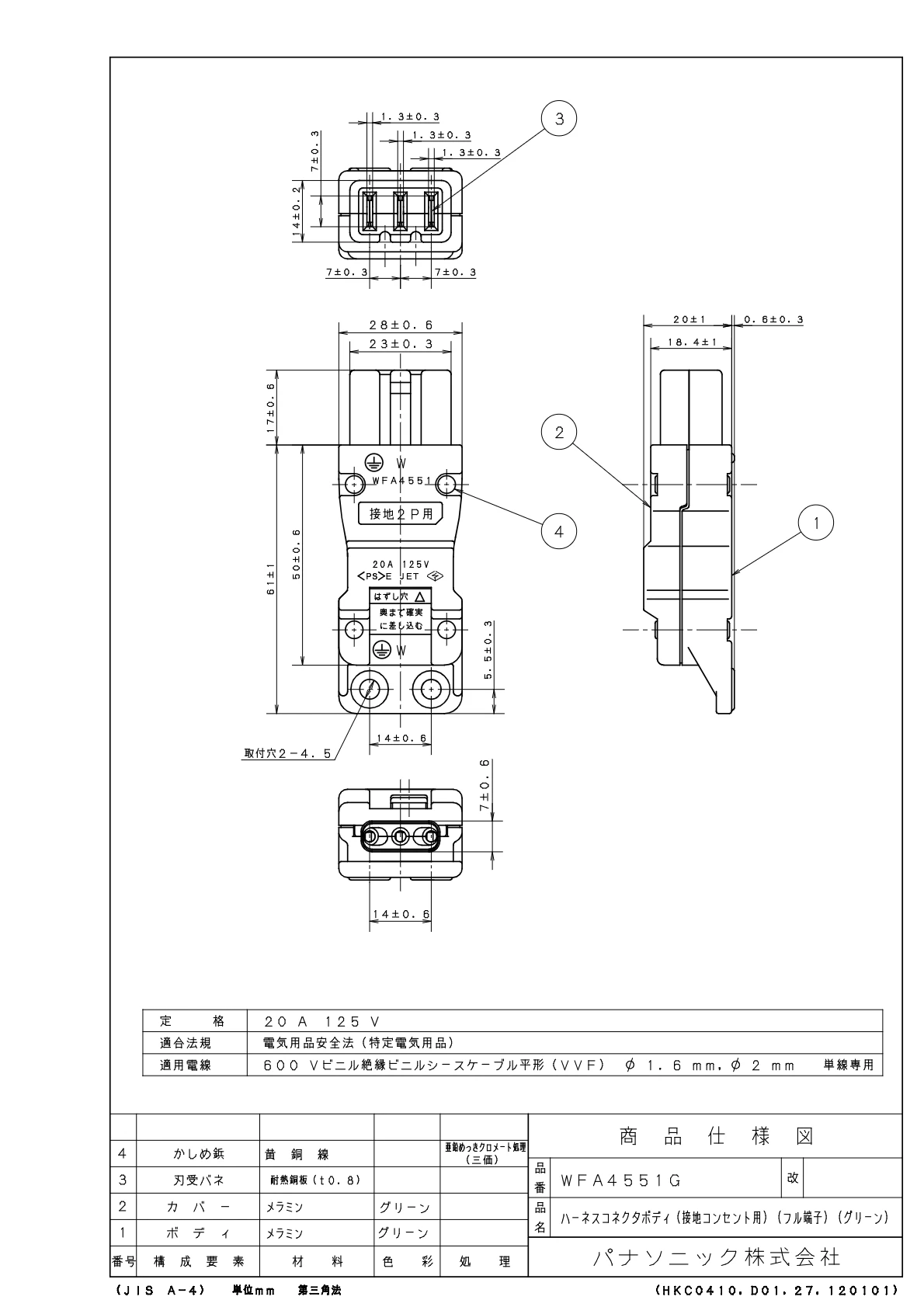 品番:WFA4551G品名:ハーネスコネクタボディ