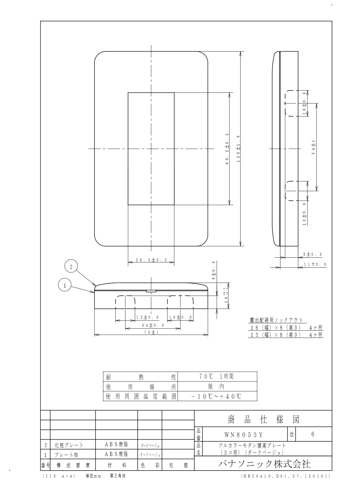 品番:WN8053Y品名:モダン腰高プレート(3コ用)(ダークベージュ)