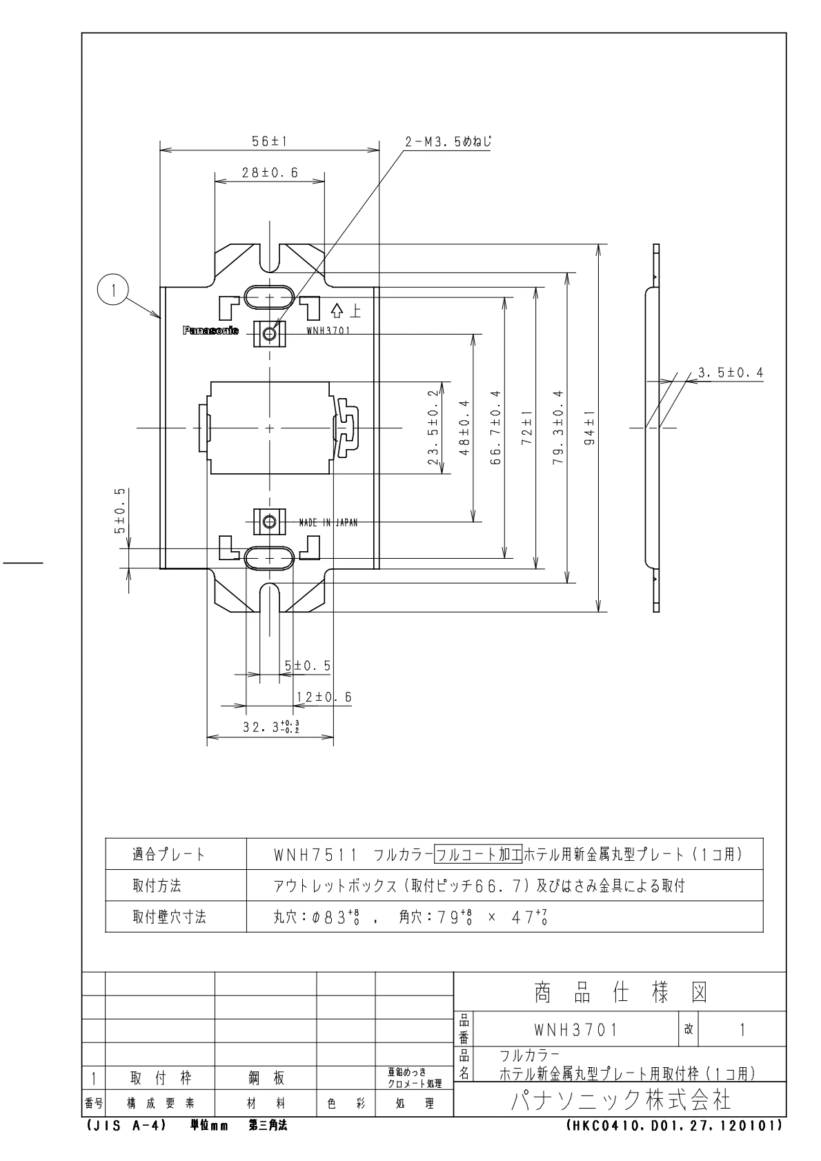 品番:WNH3701品名:ホテル新金属丸型プレート用取付枠(1コ用)