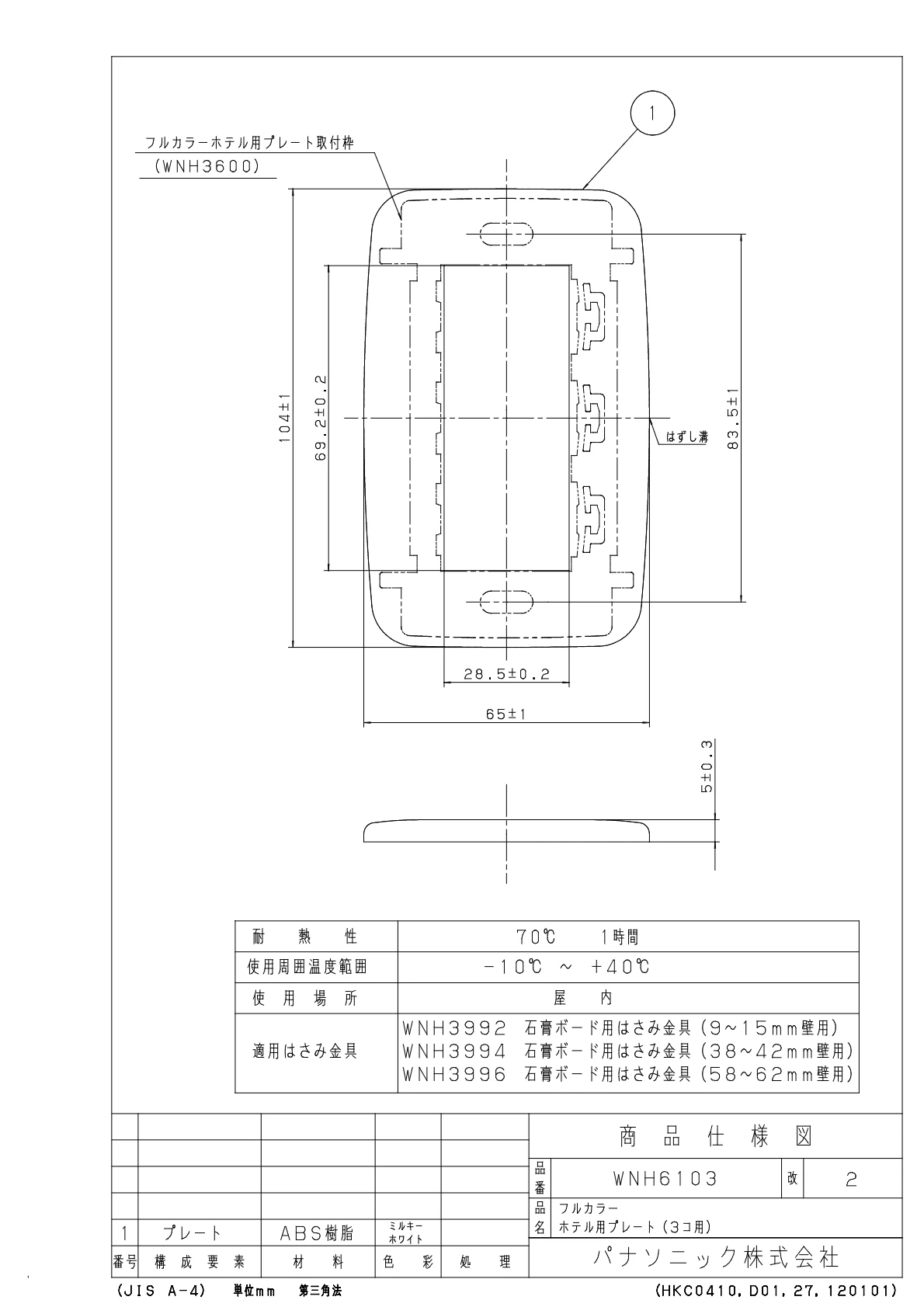 - 電設資材 > パナソニック(Panasonic) > フルカラー配線器具 > プレート > モダンプレート1~5コ用