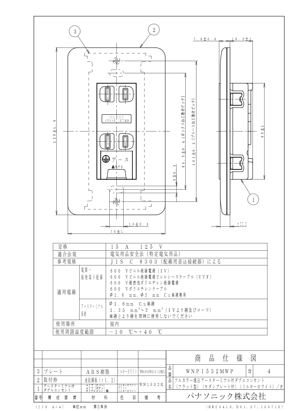 - 電設資材 > パナソニック(Panasonic) > フルカラー配線器具 > コンセント > ダブル