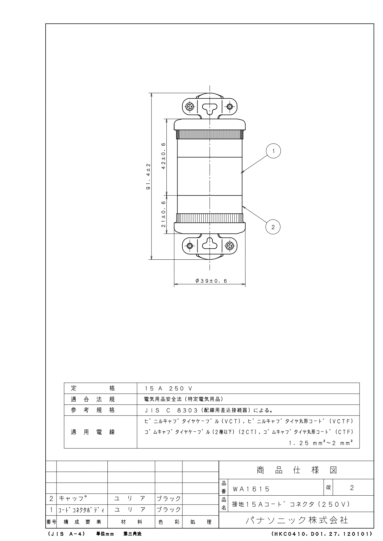 - 電設資材 > パナソニック(Panasonic) > フルカラー配線器具 > コードコネクタセット品 > 接地2P