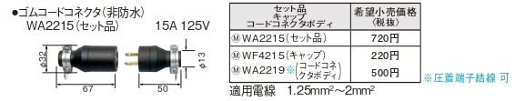 品番:WA2219品名:2P15Aゴムコードコネクタボディ