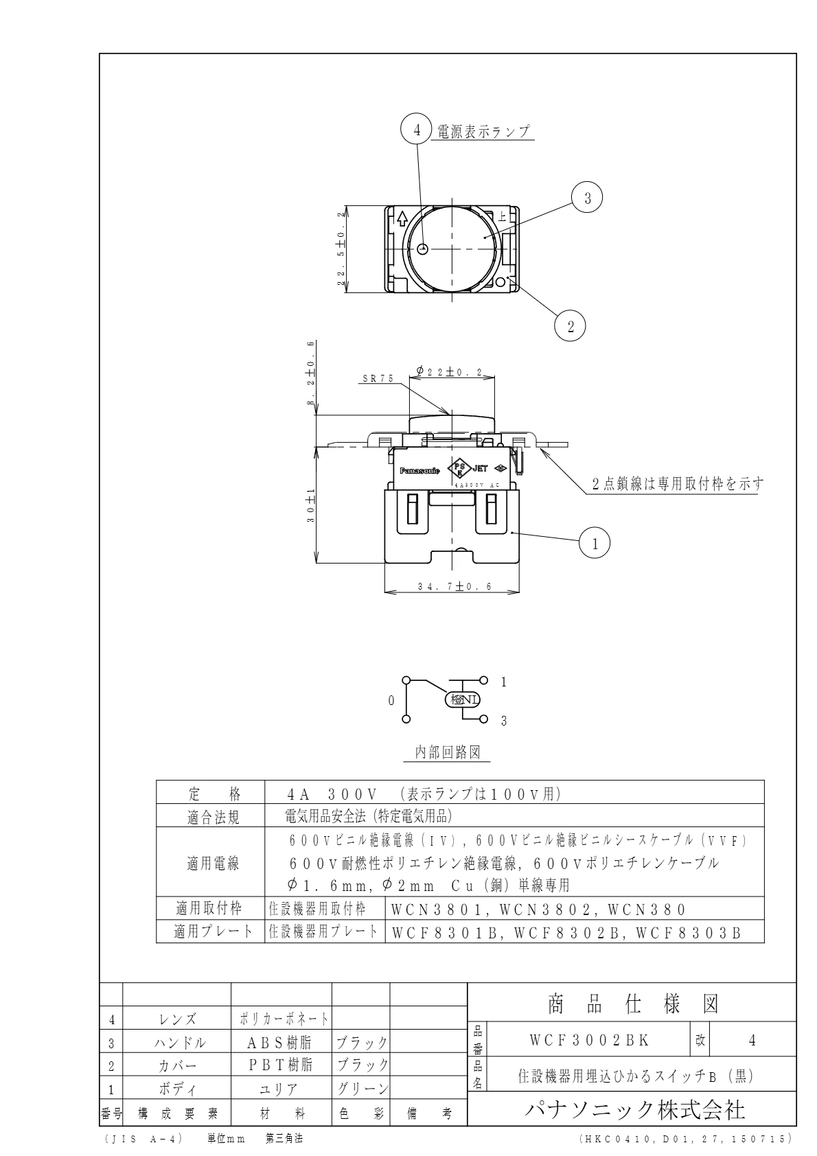 品番:WCF3002BK品名:住設機器用埋込ひかるスイッチB(黒)