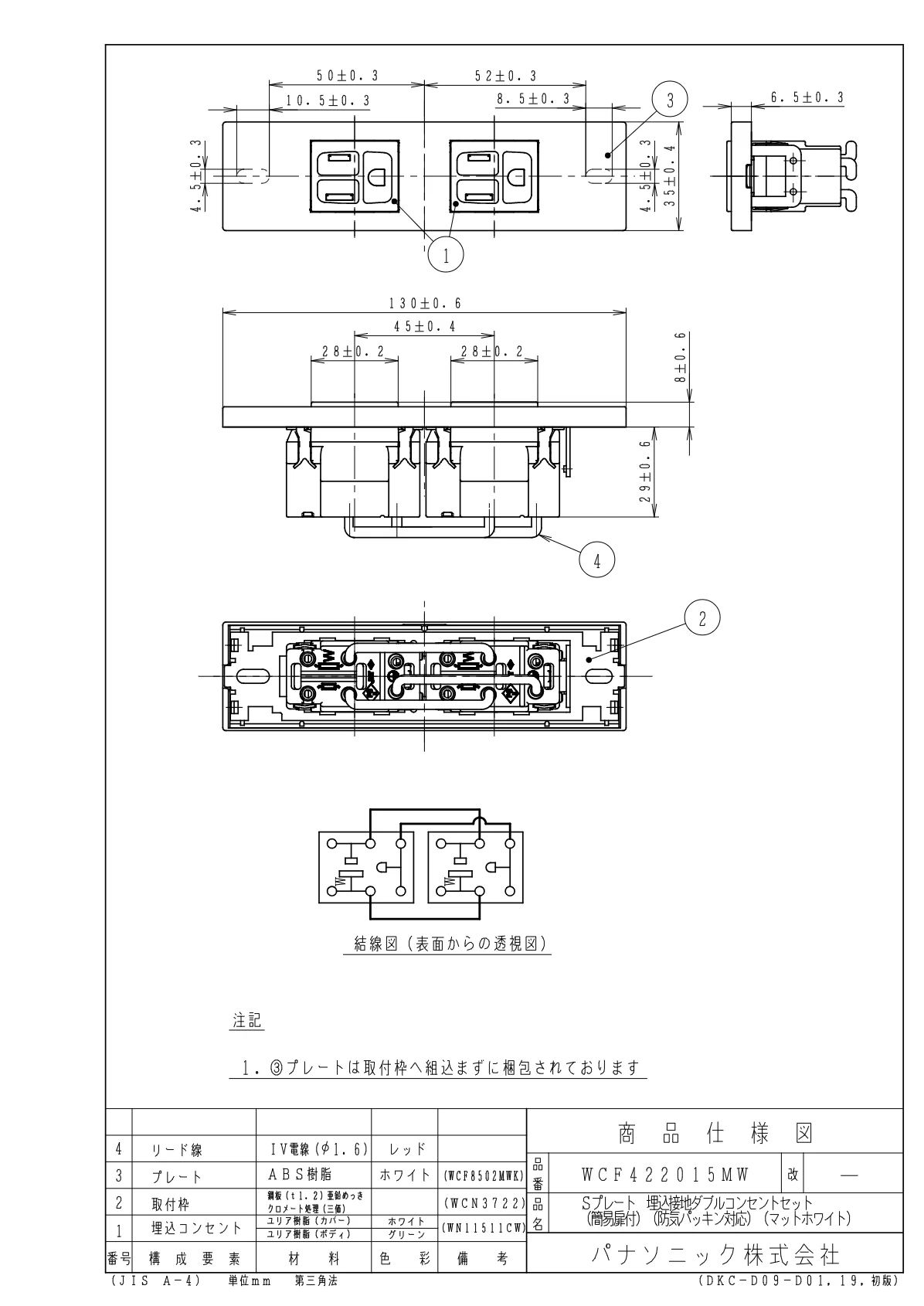 品番:WCF422015MW品名:Sプレート埋込接地ダブルコンセントセット(簡易扉付)(防気パッキン対応)(マットホワイト)