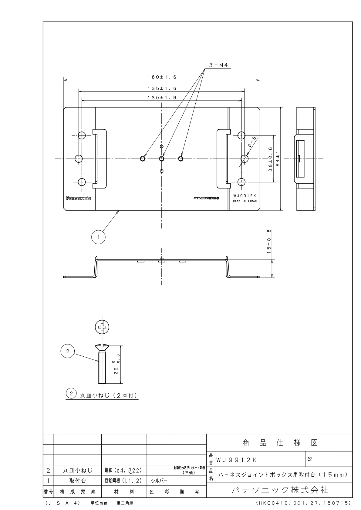 品番:WJ9912K品名:ハーネスジョイントボックス用取付台(15MM)