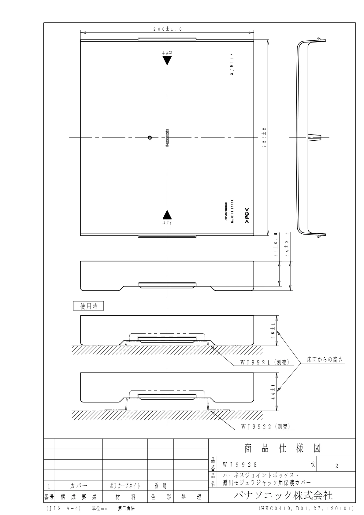 品番:WJ9928品名:ハーネスジョイントボックス・モジュラジャック用保護カバー