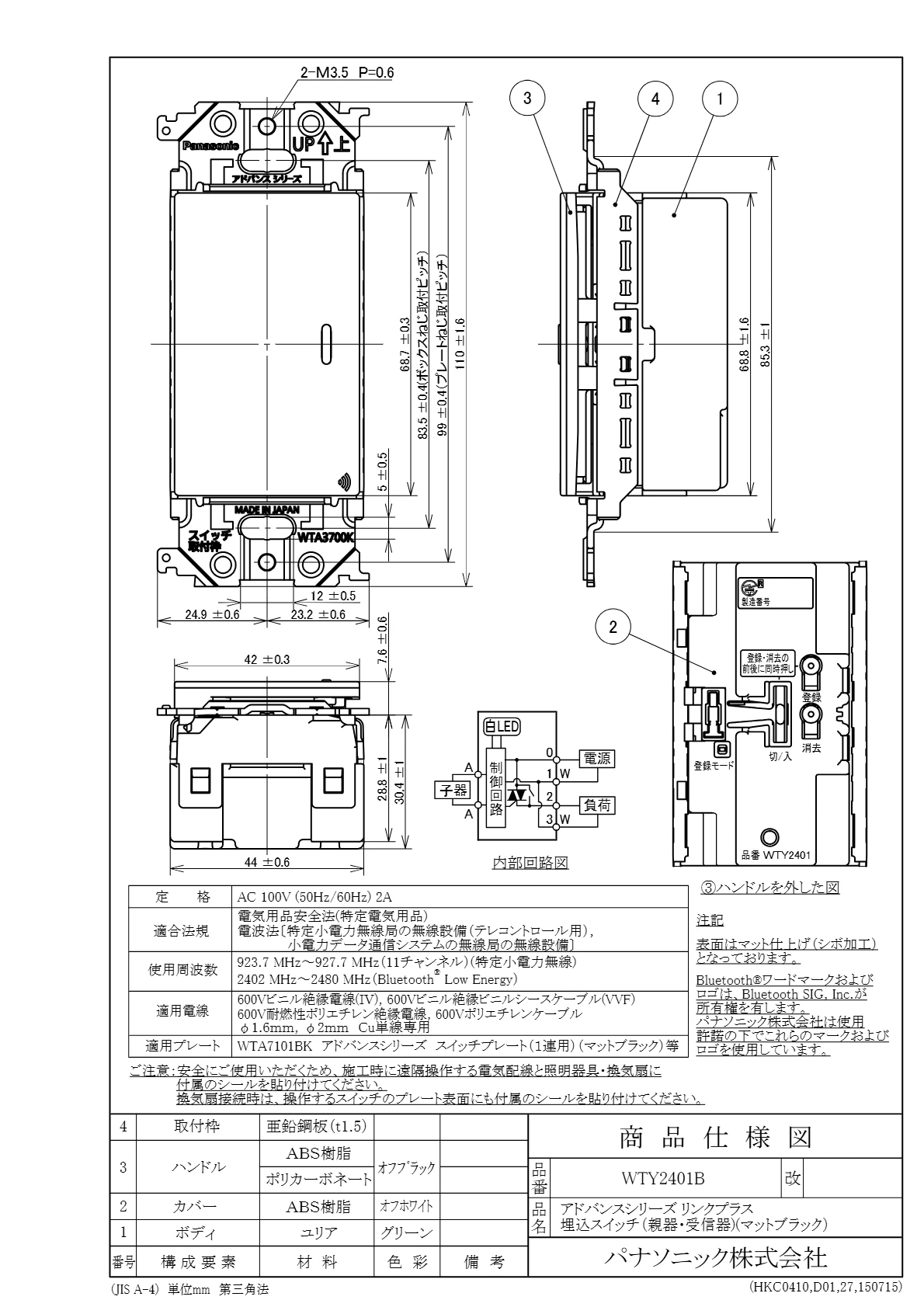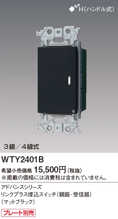 品番:WTY2401B品名:アドバンスシリーズリンクプラス埋込スイッチ(親器・受信器)(マットブラック)