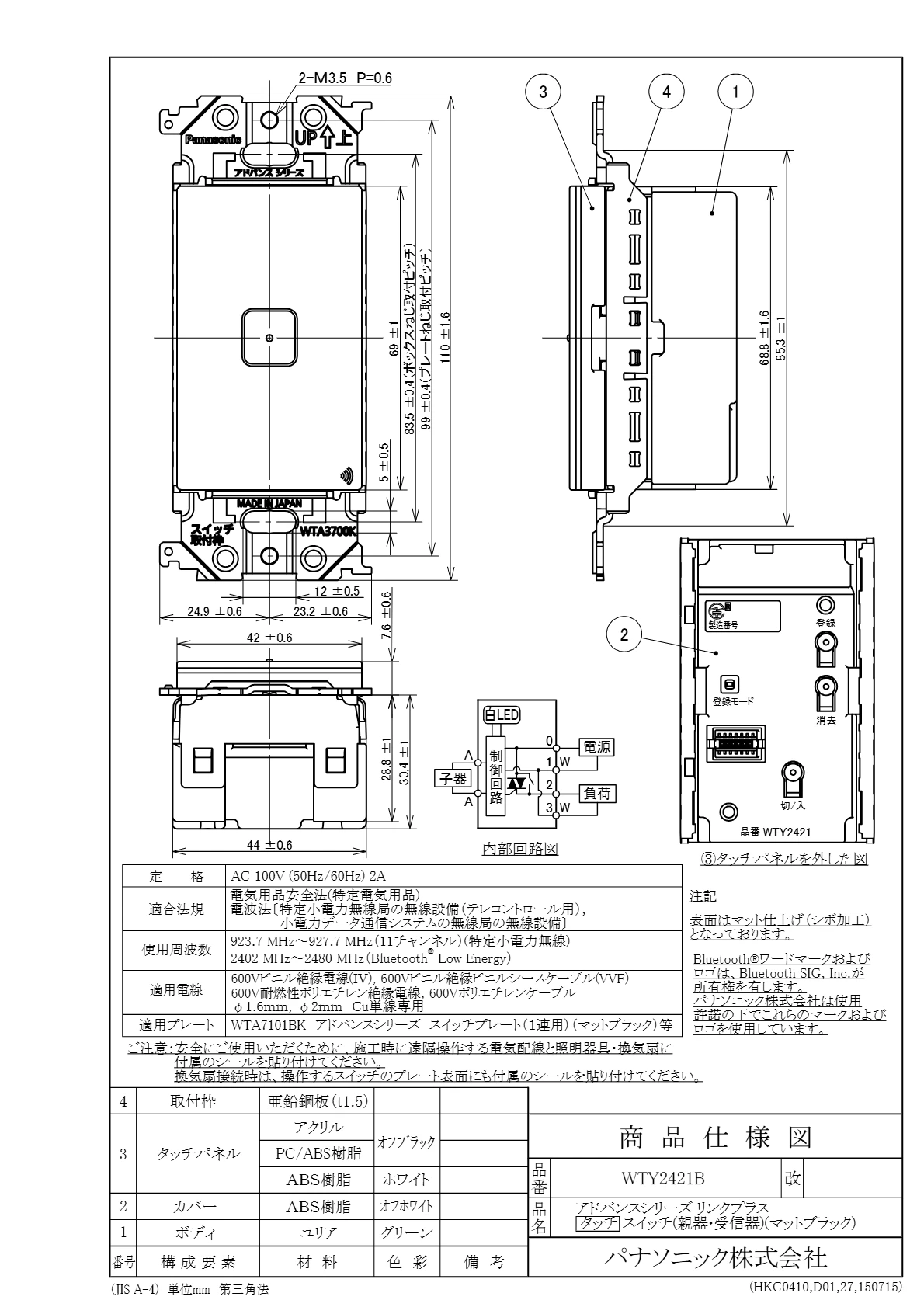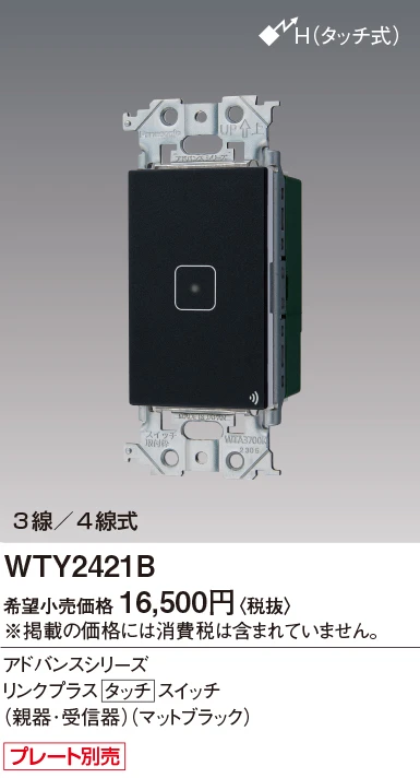 品番:WTY2421B品名:アドバンスシリーズリンクプラスタッチスイッチ(親器・受信器)(マットブラック)