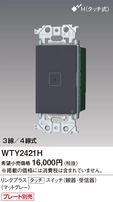 品番:WTY2421H品名:アドバンスシリーズリンクプラスタッチスイッチ(親器・受信器)(マットグレー)