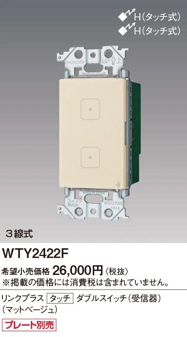品番:WTY2422F品名:アドバンスシリーズリンクプラスタッチダブルスイッチ(受信器)(マットベージュ)