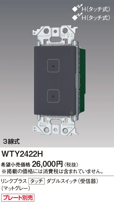 品番:WTY2422H品名:アドバンスシリーズリンクプラスタッチダブルスイッチ(受信器)(マットグレー)